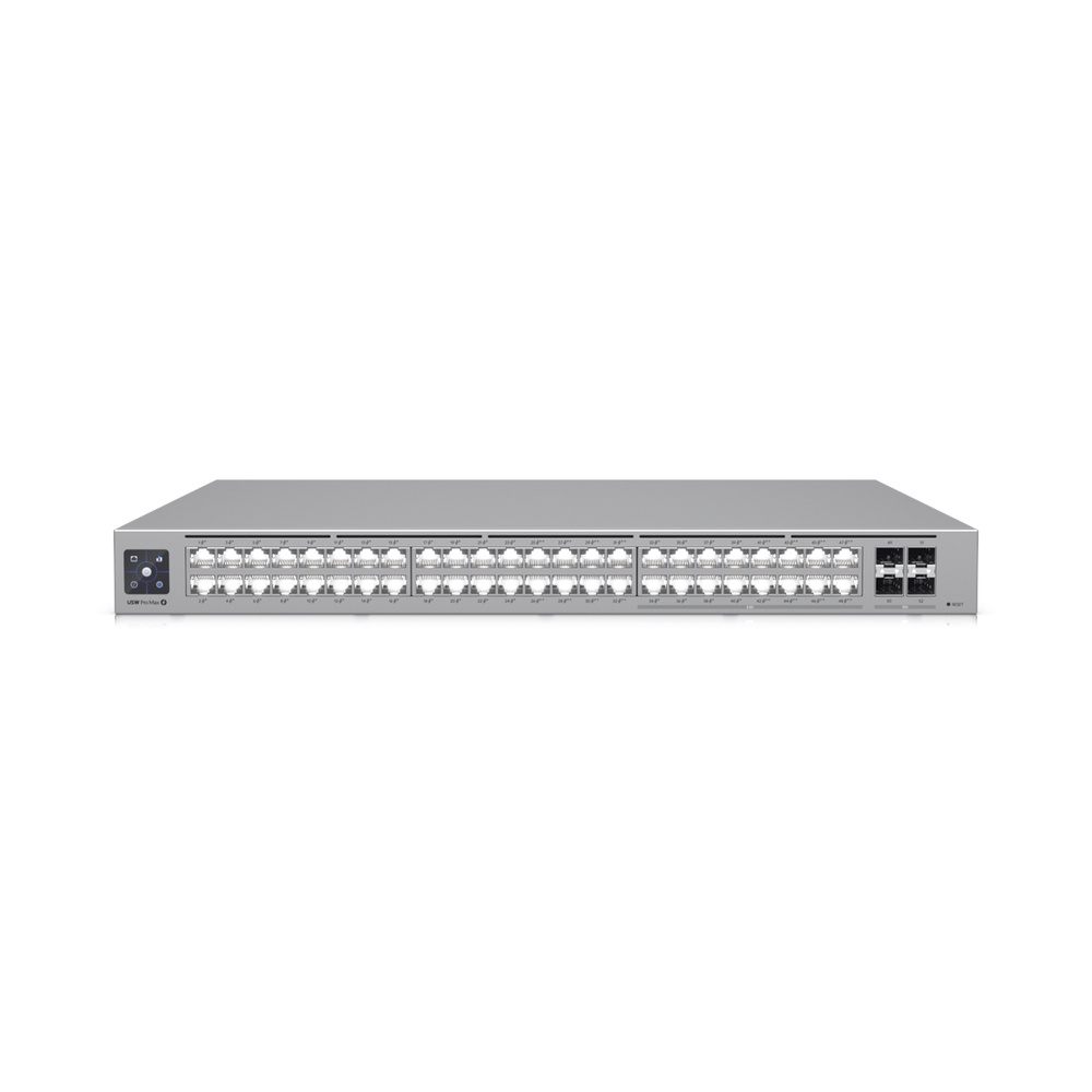 Switch de 48 puertos UniFi, Capa 3 con Etherlighting™ 2.5 GbE y POE++. Los puertos Etherlighting™ se iluminan para indicar la ubicación del puerto, velocidad/negociación y VLAN/red nativa* (16) puerto 2.5 GbE (8 puertos POE++ y 8 puertos POE+) (32) puertos GbE, (24 puertos POE ++ y 8 puertos POE+) (2) puertos 10G SFP+ Redundancia de poder DC con USRP (vendido por separado) 720W de presupuesto POE Administrado con UniFi Network 8.0.24 o superior
